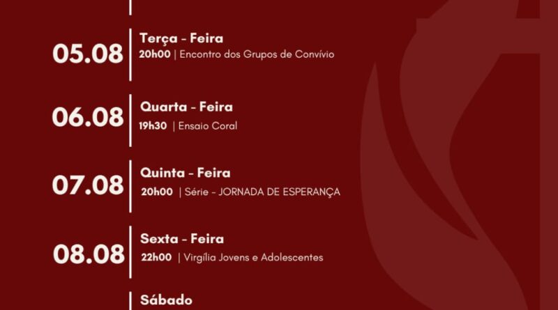 Agenda 28 de julho de 2025 Leandro Carvalho de Oliveira Agenda Semanal – de 28 de julho a 3 de agosto Confira a agenda desta semana da Igreja Batista Renovada de Boituva! Read More
